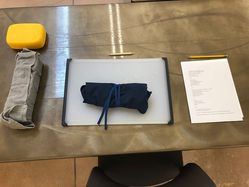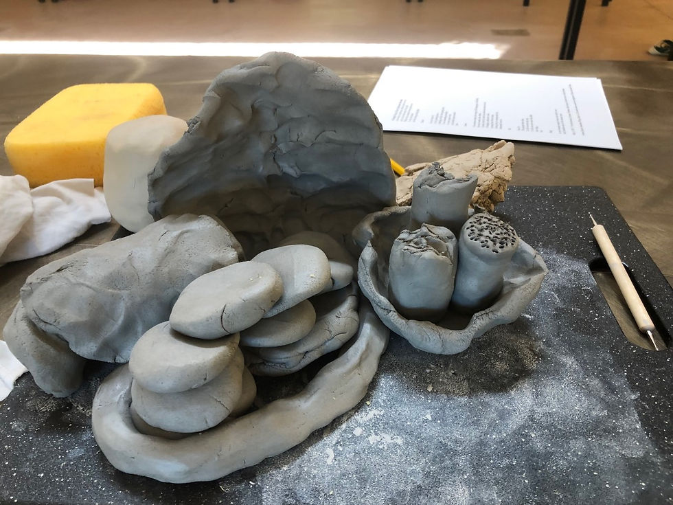 Mindfulness practices were held in a classroom setting as well as outdoors in a forest setting. The environment was set up with great care in regard to stewardship of space and materials. Upon arriving in the classroom, participants were greeted with a defined space for their practice. Each individual was provided an apron, drinking water, a moist sponge, paper, pencil, pre-portioned clay, and a handout of the agenda. Paper and pencil were also provided to record any thoughts or ideas as they moved through the retreat. Background music was used during welcoming and warm-up. The retreat began with a land acknowledgment for both the space and the clay used to pay tribute to the original inhabitants whose land we used.